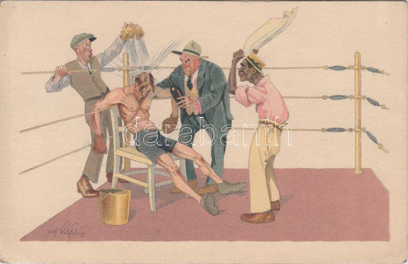 Box match, humour, black man, B.K.W.I. 278-1. s: Schönpflug