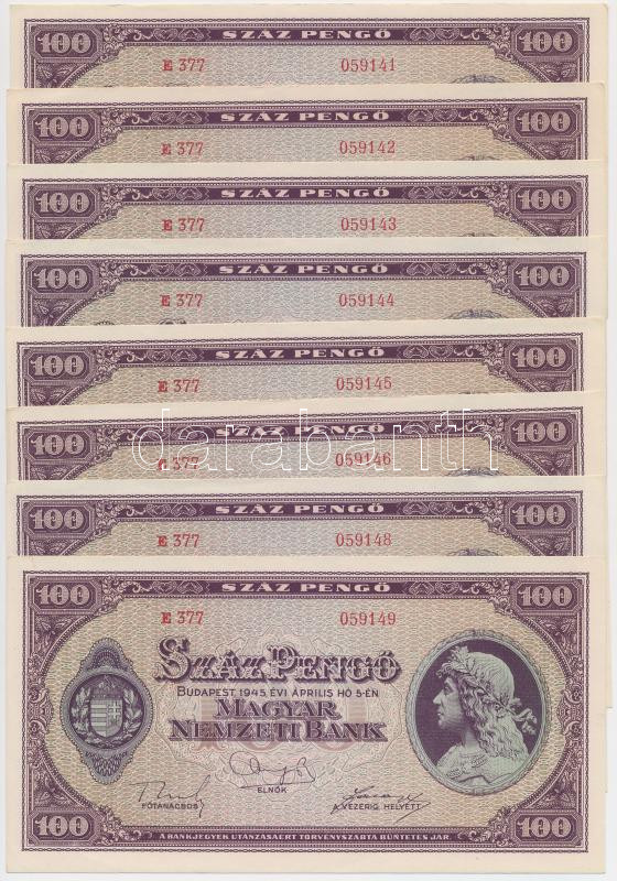 1945. 100P (8x) sorszámkövetők T:I- hajtatlanok, sarokkopások