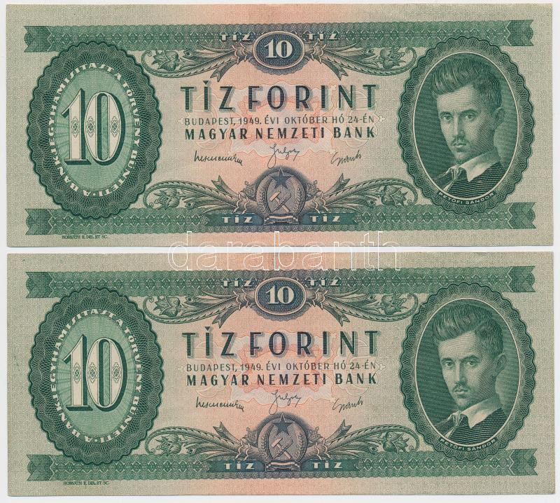 https://www.darabanth.com/en/231-Online-auction/231.0/Numismatics/Hungarian-Banknotes~400007/1949-10Ft-2x-sorszamkovetok-TII~II1040783