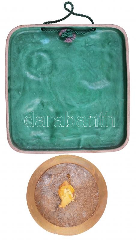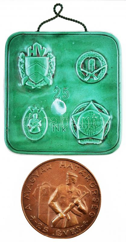 ~1983. "25 éves a Magyar Határőrség" Br plakett, hátlapon ragasztásnyom (101mm) és festett kerámia falidísz (157x157mm) T:2