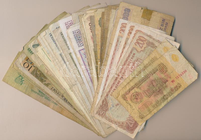 Description: 70db vegyes külföldi bankjegy, közte kínai, lengyel, francia, koreai bankjegyek T:vegyes