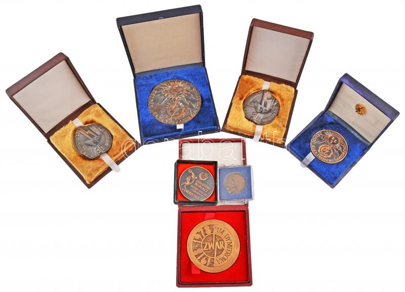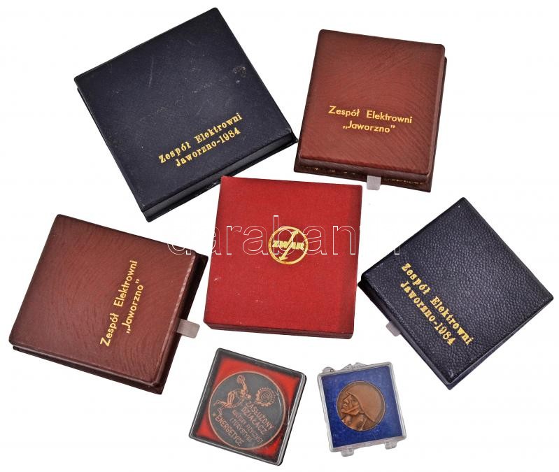 Description: Lengyelország ~1970-1980. 7db vegyes emlékérem tokokban, közte 1984-1989. "Jaworzno-i Erőmű" 4db jubileumi emlékérem eredeti tokban T:vegyes