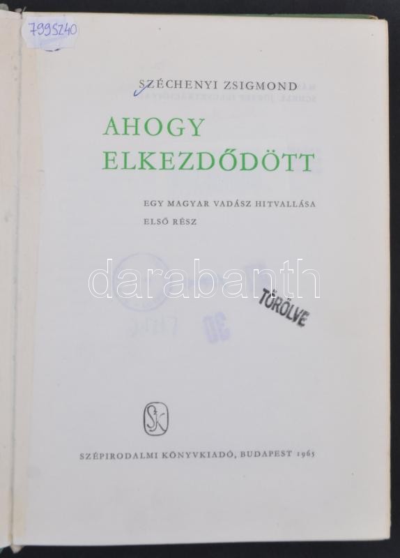 Széchenyi Zsigmond: Ahogy elkezdődött... Egy magyar vadász hitvallása.... https://www.darabanth.com/en/231-Online-auction/231.0/Other-collectibles/Books-Hunting~600037/Szechenyi-Zsigmond-Ahogy-elkezdodott-Egy-magyar-vadasz-hitvallasa-Elso-resz-Budapest-1~II1046187