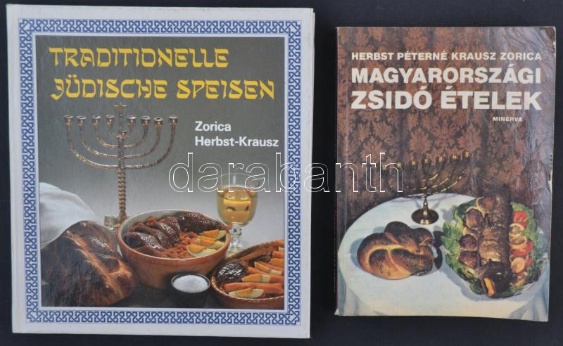 2 szakácskönyv-Herbst Péterné Krausz Zorica: Magyarországi zsidó ételek. Bp., 1984, Minerva. Kiadói papírkötés, kissé kopott állapotban; Zorica Herbst-Krausz: Traditionelle jüdische Speisen. Bp., 1984, Minerva. Kiadói kartonált kötés, jó állapotban.