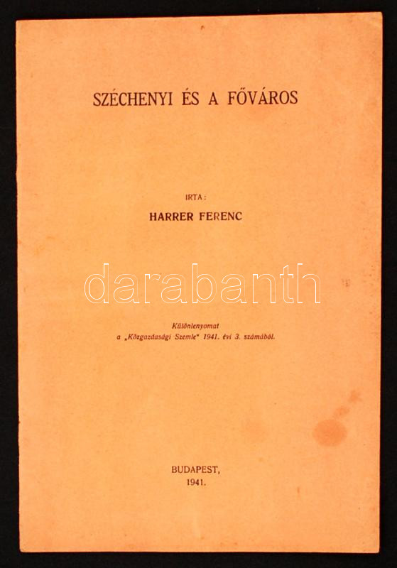 Harrer Ferenc: Utazás és a főváros. Különlenyomat a "Közgazdasági Szemle" 1941. évi 3. számából. Bp., 1941, kiadói papírkötés, jó állapotban.
