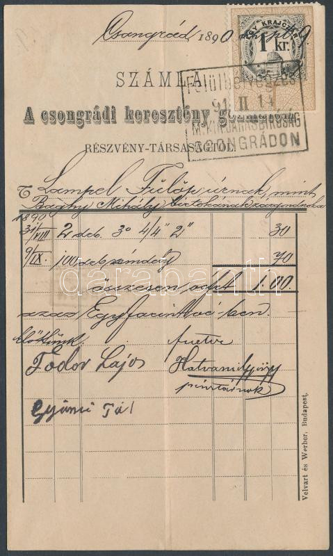 1890 Csongrádi keresztény gőzmalom rt. számla