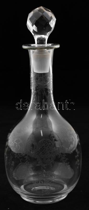 Gravírozott üveg kiöntő dugóval, apró karcolásnyomok az üveg alján m: ...