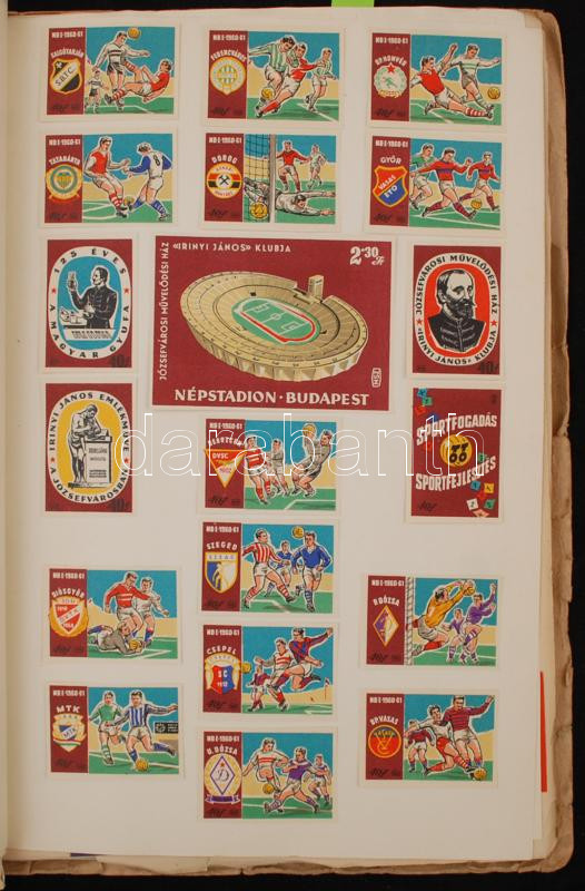 Description: cca 1960 Nagy gyufacímke gyűjtemény, kb. 700 db csak SPORTtal kapcsolatos sorozatok, rendezve, mappába ragasztva, kis és nagyméretűek, nagyrészt magyar vonatkozásúak