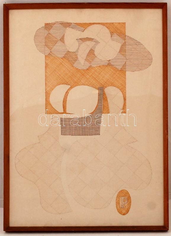 P jelzéssel: Geometriai formák. Vegyes technika, papír, jelzett, üvege...