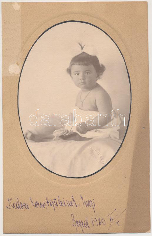 1920 Gömöri Sári szegedi fényképész gyermekfelvétele Juczikáról, hideg... https://www.darabanth.com/en/231-Online-auction/231.0/Other-collectibles/Photo~600147/1920-Gomori-Sari-szegedi-fenykepesz-gyermekfelvetele-Juczikarol-hideg-pecsettel-jelzett-m~II1038458