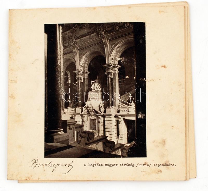 Description: cca 1938 Budapest nevezetességei és látványosságai 18 db művészi minőségű sokszorosított fotó, sok érdekességgel. Kézzel és géppel feliratozva 25x20 cm