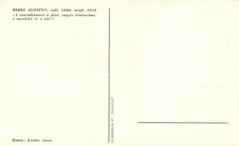Bebel Ágoston, "A szocializmusé a jövő, vagyis elsősorban a munkásé és a nőé!" kiadó: Kéthly Anna
