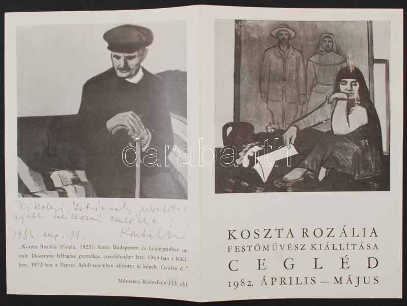 https://www.darabanth.com/en/232-Online-auction/232.0/Other-collectibles/Autographs~400027/1982-Koszta-Rozalia-1925-1994-festomuvesz-cegledi-kiallitasanak-dedikalt-katalogusa-4p~II1052457