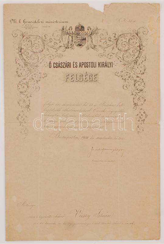 https://www.darabanth.com/en/232-Online-auction/232.0/Other-collectibles/Documents~400023/1906-Cimzetes-ornagyi-kinevezes-baro-Vecsey-Istvan-reszere-Jekelfalussy-Lajos-honvedelmi-~II1049500