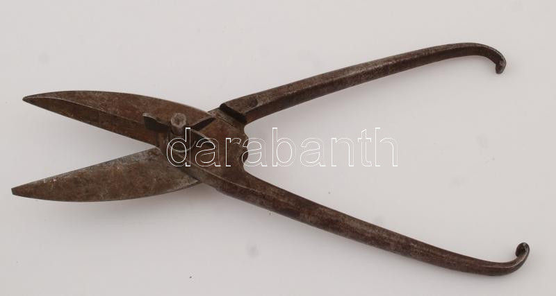 Régi fém lemezvágó olló, jelzett, h: 30 cm