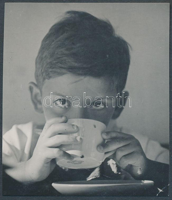 cca 1933 Kinszki Imre (1901-1945): Gáborka reggelije, jelzetlen vintage fotó a szerző hagyatékából, 6x5 cm