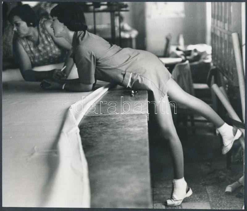 cca 1975 Adam Eisenhöffel: Asszonyok a szabász asztalon, pecséttel jelzett vintage fotóművészeti alkotás, 17x20 cm