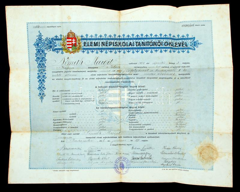 1916 a Budapesti II. kerületi magyar királyi állami népiskola tanítónő... https://www.darabanth.com/en/233-Online-auction/233.0/Other-collectibles/Historical-documents-manuscripts~400017/1916-a-Budapesti-II-keruleti-magyar-kiralyi-allami-nepiskola-tanitono-es-nevelokepzo-in~II1063330