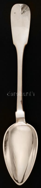 Ezüst, bécsi antik mártás kanál, Ag, br.:123gr., jelzett, 27cm