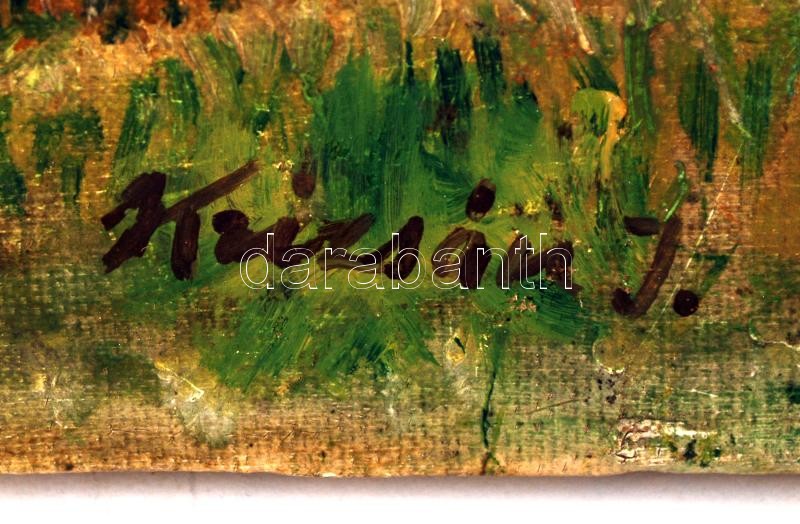 Krizsán jelzéssel: Nagybányai táj, olaj, vászon, apró festék lepattaná...