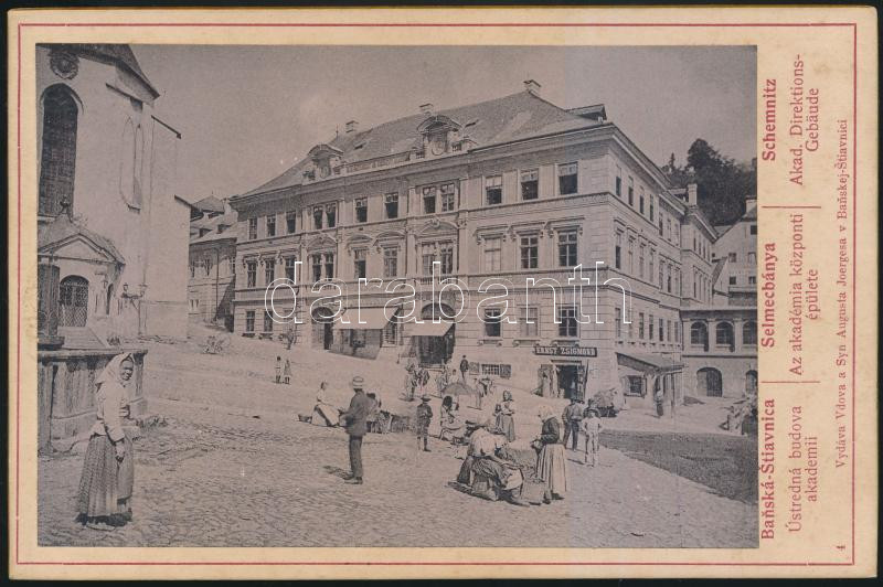 cca 1890 Selmecbánya, Szlovákia, Az Akadémia központi épülete, keményh... https://www.darabanth.com/en/233-Online-auction/233.0/Other-collectibles/Photo~400019/cca-1890-Selmecbanya-Szlovakia-Az-Akademia-kozponti-epulete-kemenyhatu-foto-feliratozv~II1060296
