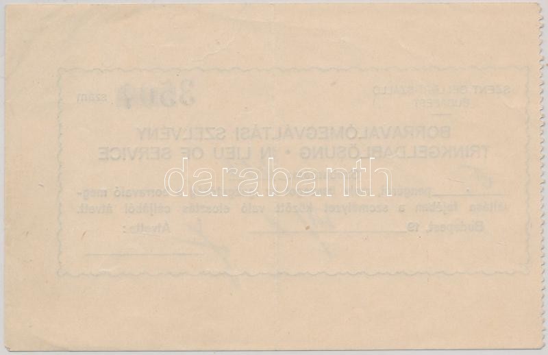 ~1930-1940. "Szent Gellért-Szálló Budapest - Borravalómegváltási szelv...