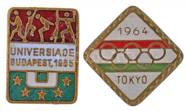 1964. "Tokyo 1964" fém olimpiai jelvény + 1965. "Universiade Budapest 1965" zománcozott fém jelvény T:2