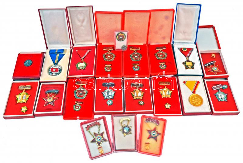 20db vegyes szocialista kitüntetés tokban, sok miniatűrrel, közte "A V...