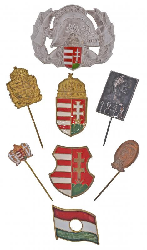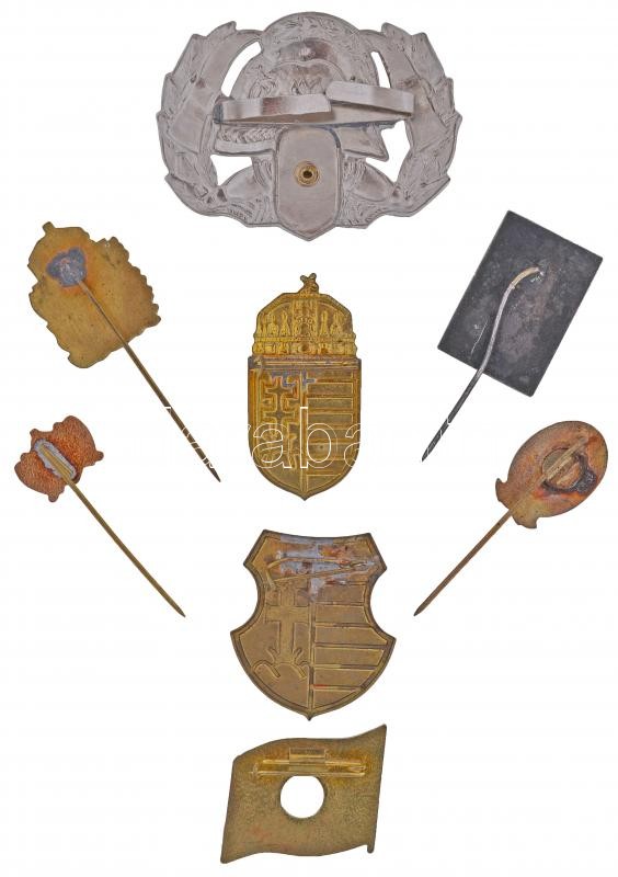 8db, főleg klf magyar címeres, zászlós fém jelvény, közte zománcozottak is T:2,2-