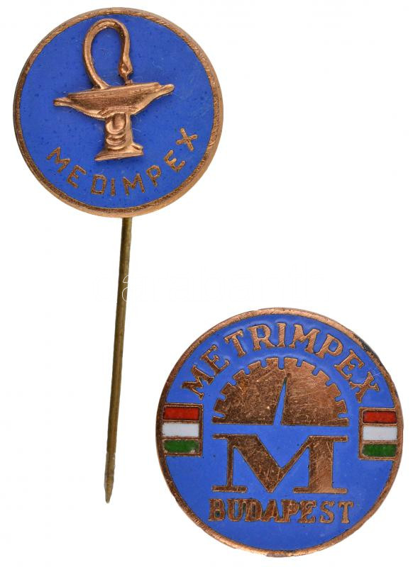 DN "Metrimpex Budapest" zománcozott fém jelvény + "Medimpex" zománcozott fém kitűző T:2