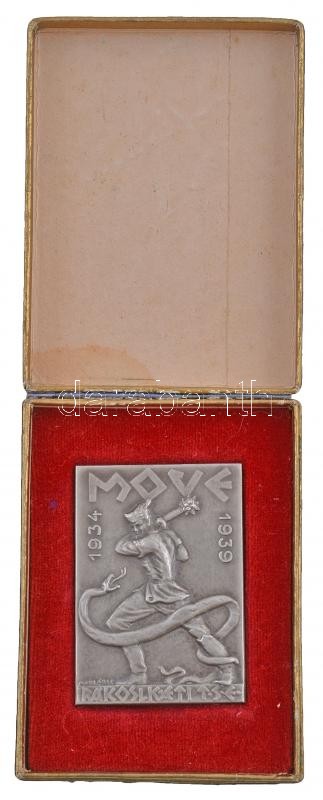 1939. "MOVE (Magyar Országos Véderő Egylet) - Rákosligeti T.S.E" ezüstözött fém plakett eredeti dísztokban. Szign.: Maklári (52x37mm) T:2