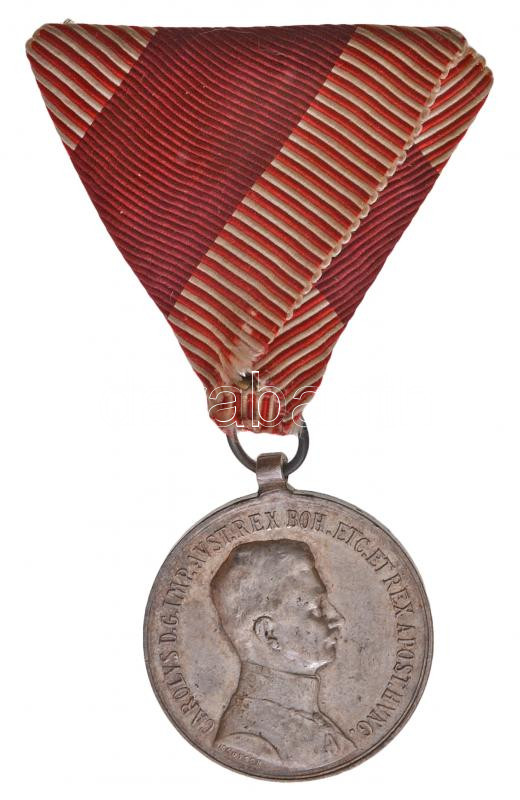 1917. "Károly Ezüst Vitézségi Érem II. osztály" Ag kitüntetés peremen ... https://www.darabanth.com/en/234-Online-auction/234.0/Numismatics/Military~30015/1917-Karoly-Ezust-Vitezsegi-Erem-II-osztaly-Ag-kituntetes-peremen-A-jelzessel-nem-ho~II1067725