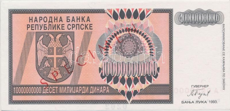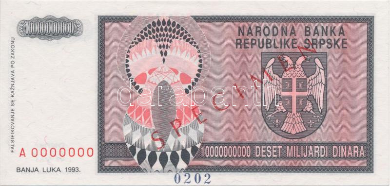 Description: Bosznia-Hercegovina / Szerb Köztársaság 1993. 10.000.000.000D "SPECIMEN" "A0000000", "0202" sorszámmal T:I