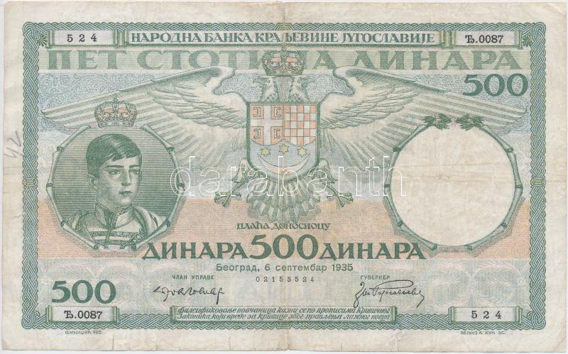 Yugoslavia 1935. 500 Dinara C:rest...