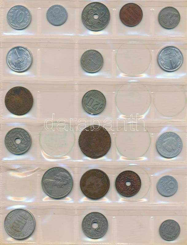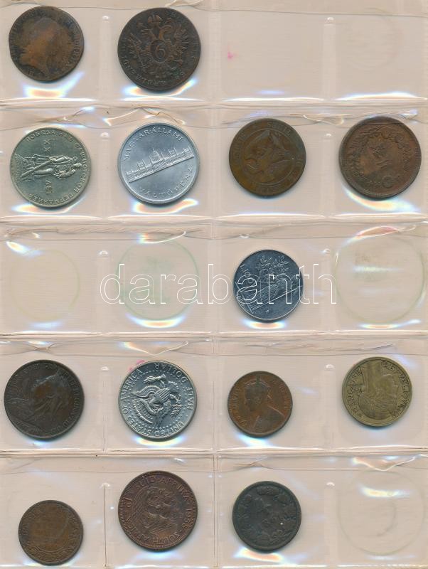 241pcs of diff. Hungarian and foreign coins in collectors album, between them Roman coins, kreuzers, better pieces C:mixed