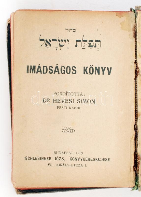 https://www.darabanth.com/en/234-Online-auction/234.0/Other-collectibles/Books-Judaica~40019/Imadsagos-konyv-Budapest-1913-Schlesinger-Jozs-Viseltes-kiadoi-egeszvaszon-kotesben~II1064575