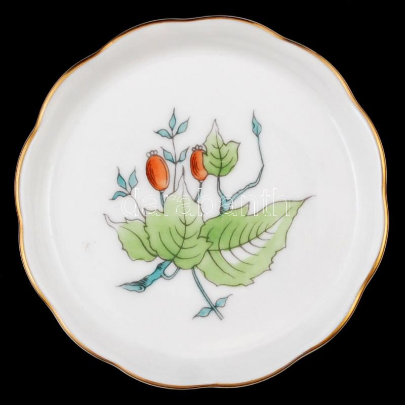 Herendi csipkebogyó mintás tálka, kézzel festett, hibátlan, jelzett, d:7,5 cm