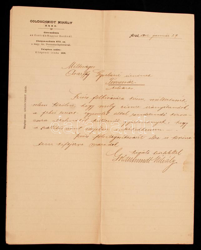 https://www.darabanth.com/en/234-Online-auction/234.0/Other-collectibles/Documents~40033/1902-Arad-Goldschmidt-Mihaly-fejleces-levelpapirja~II1068440
