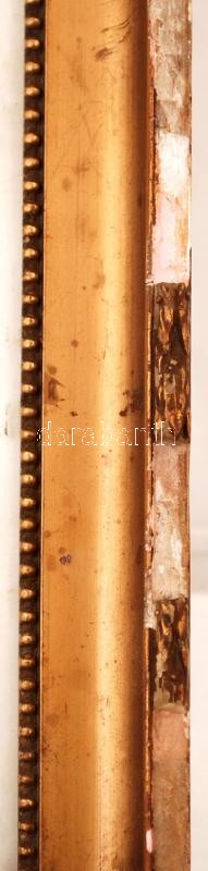 Díszes, egyik oldalán sérült, üvegezett fa képkeret, benne japán életk...