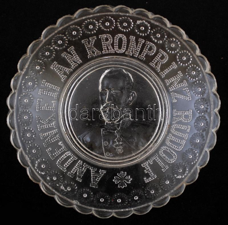 Üveg kis tálka, "Andenken an kronprinz Rudolf" felirattal, d:13cm