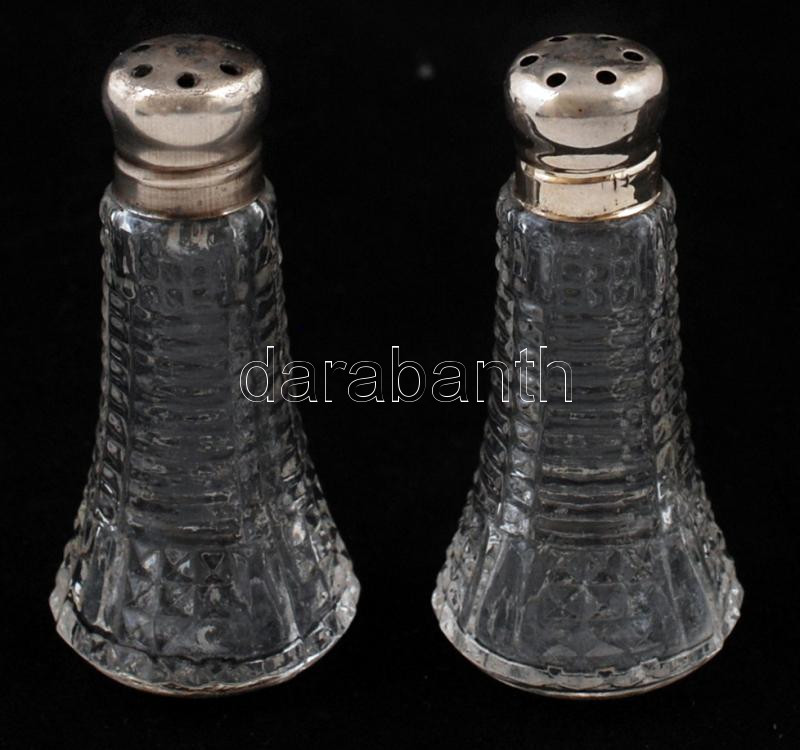 Starling Ezüst kupakos, üveg fűszerszórópár, jelzett,5,5cm