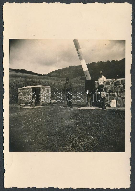 1940 Erdély, határsorompó, fotó, hátulján feliratozva, 9×6 cm