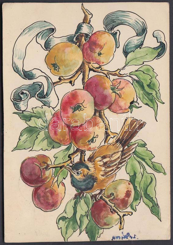 Benczúr Elza (Ürmössy Jenőné)(1874-1961): Madárka. Akvarell, papír, je...