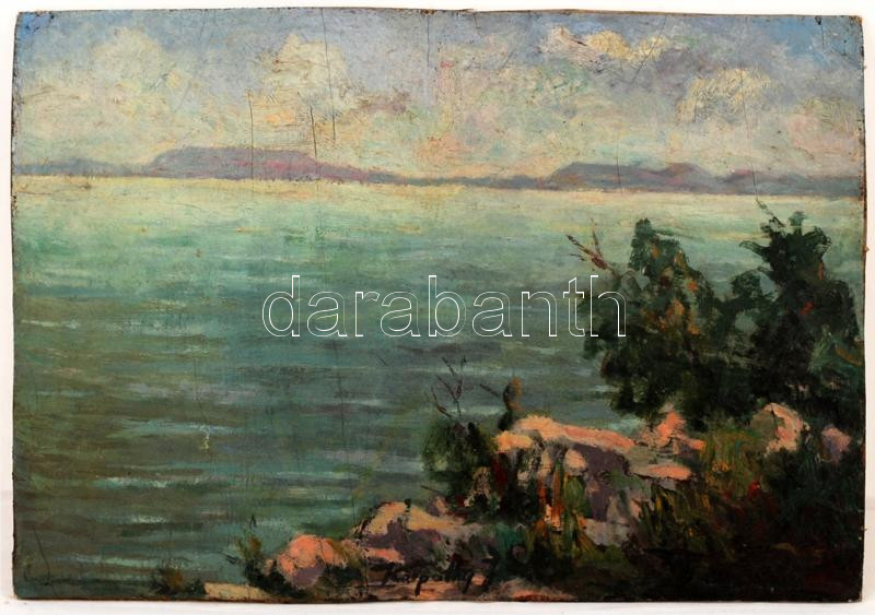 Kárpáthy jelzéssel: Balaton, olaj, farost, 24,5×34,5 cm