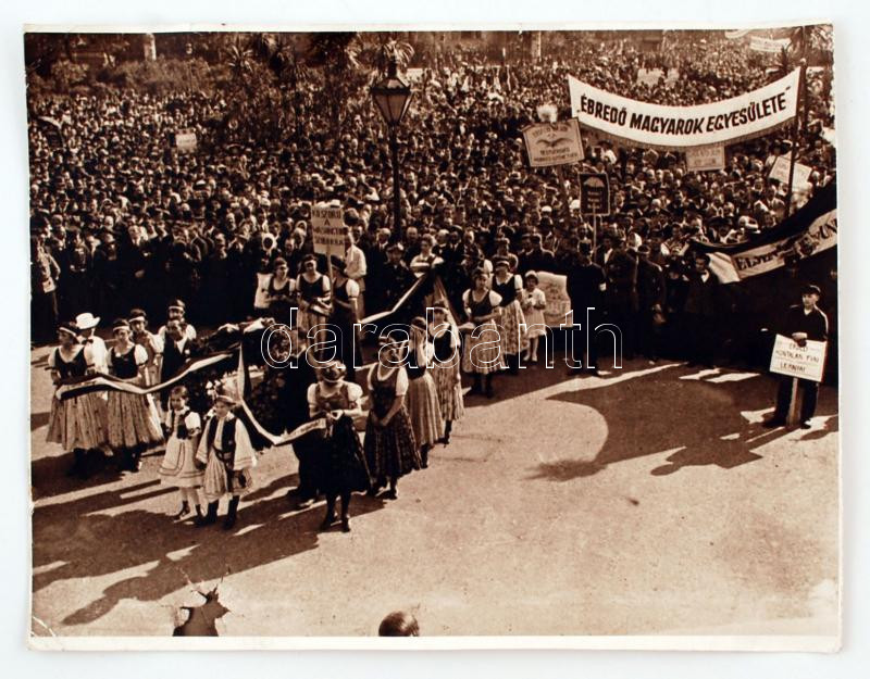 cca 1930 Irredenta nagygyűlés (Ébredő Magyarok Egyesülete, stb.) koszo...