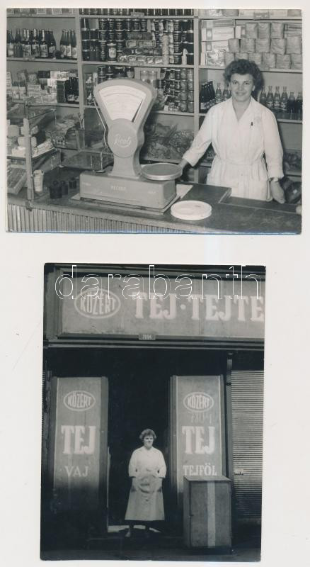 cca 1950-1960 A KÖZÉRT-ben, 2 db üzletfotó, 9x12 cm