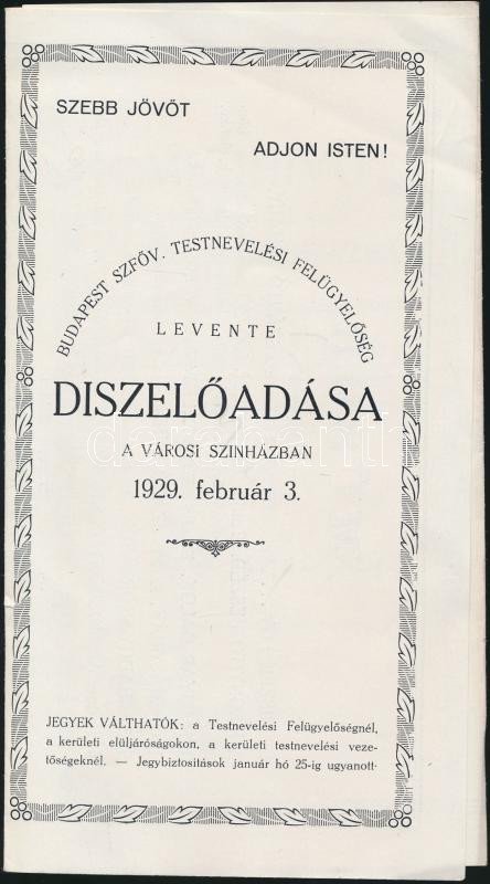 1929 Meghívó Budapest Szfőv. Testnevelési Felügyelőségének levente díszelőadására