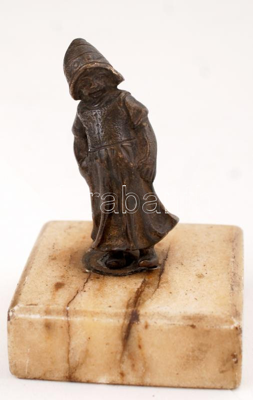 Kislány, bronz szobor, jelzés nélkül, apró kopásnyomokkal, alabástrom talapzaton, m: 8,5 cm