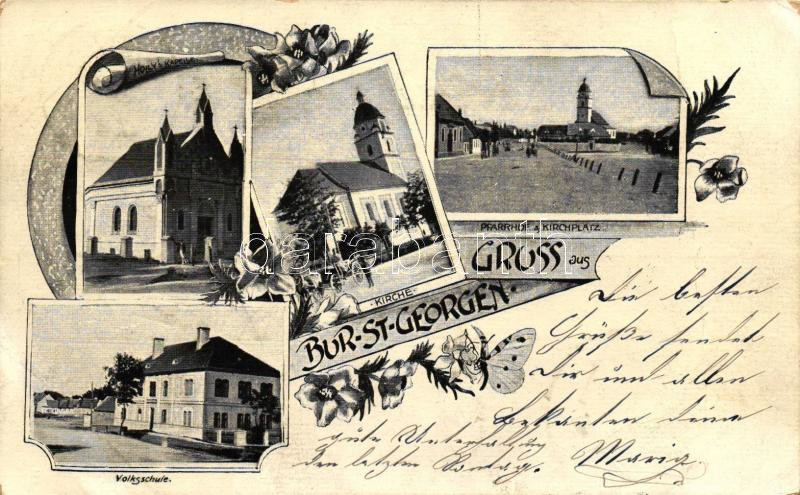 1899 Búrszentgyörgy, Bur Sankt Georgen; Holly's Kapelle, Kirche, Kirchplatz, Volkschule / chapel, church, square, school, Art Nouveau (fa)