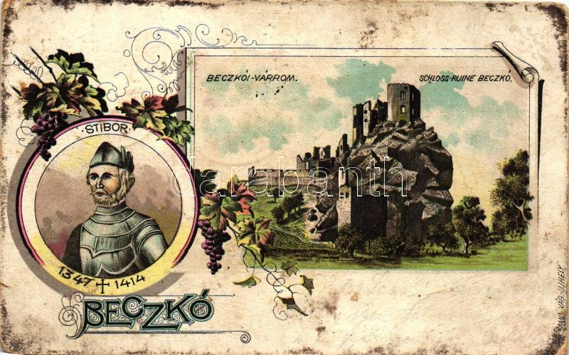 Beckó, vár, Stibor / castle, grapes, litho (small tear)